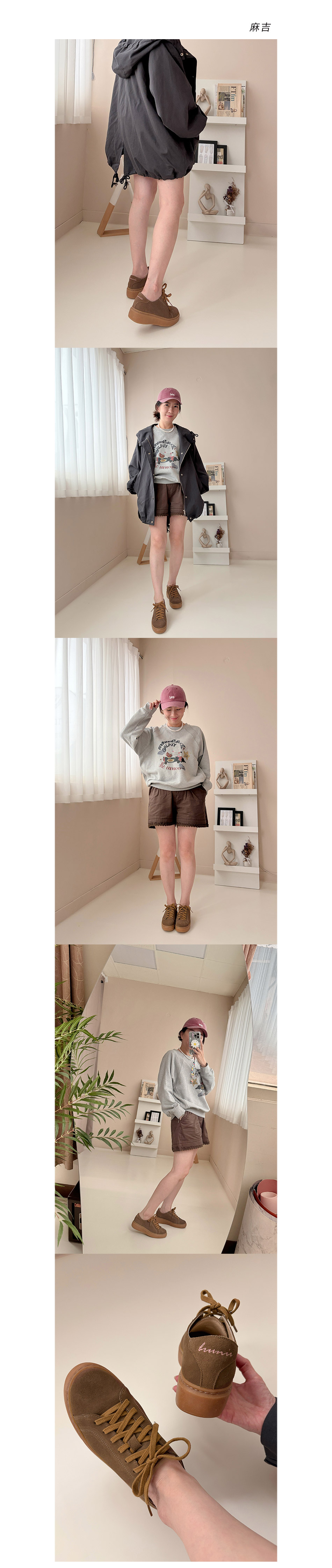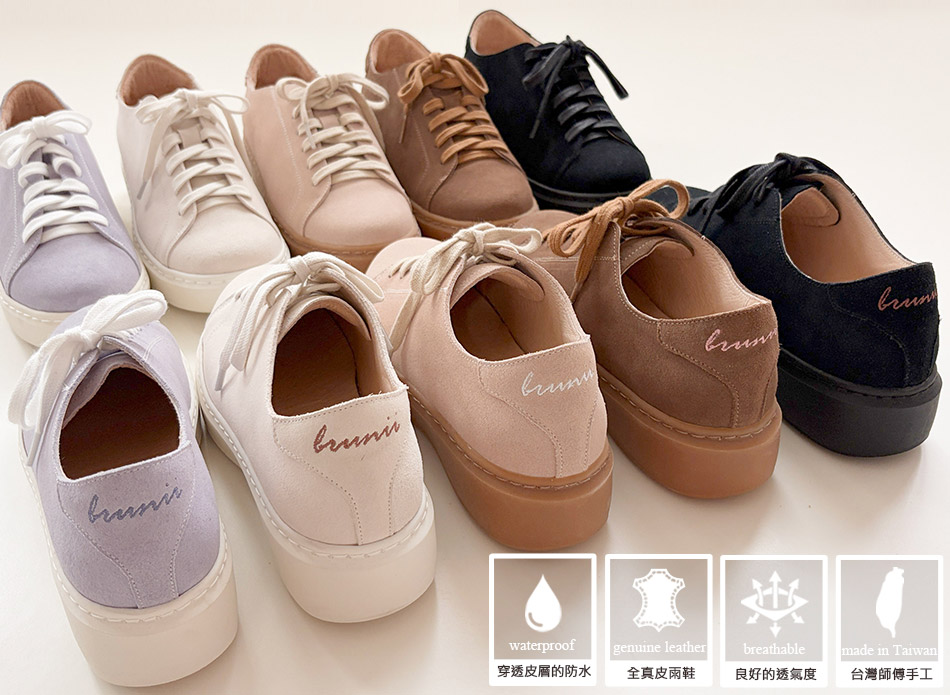 B面第一首鬆緊綁帶牛皮厚底靴