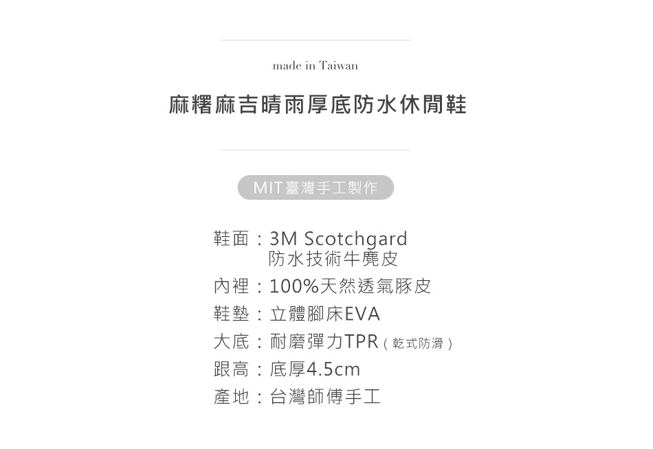 麻糬麻吉晴雨厚底防水休閒鞋